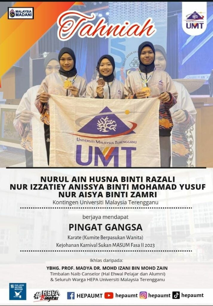 Srikandi UMT, Nurul Ain Husna Binti Razali raih pingat lagi di Kejohanan Sukan MASUM Fasa 2,2023
