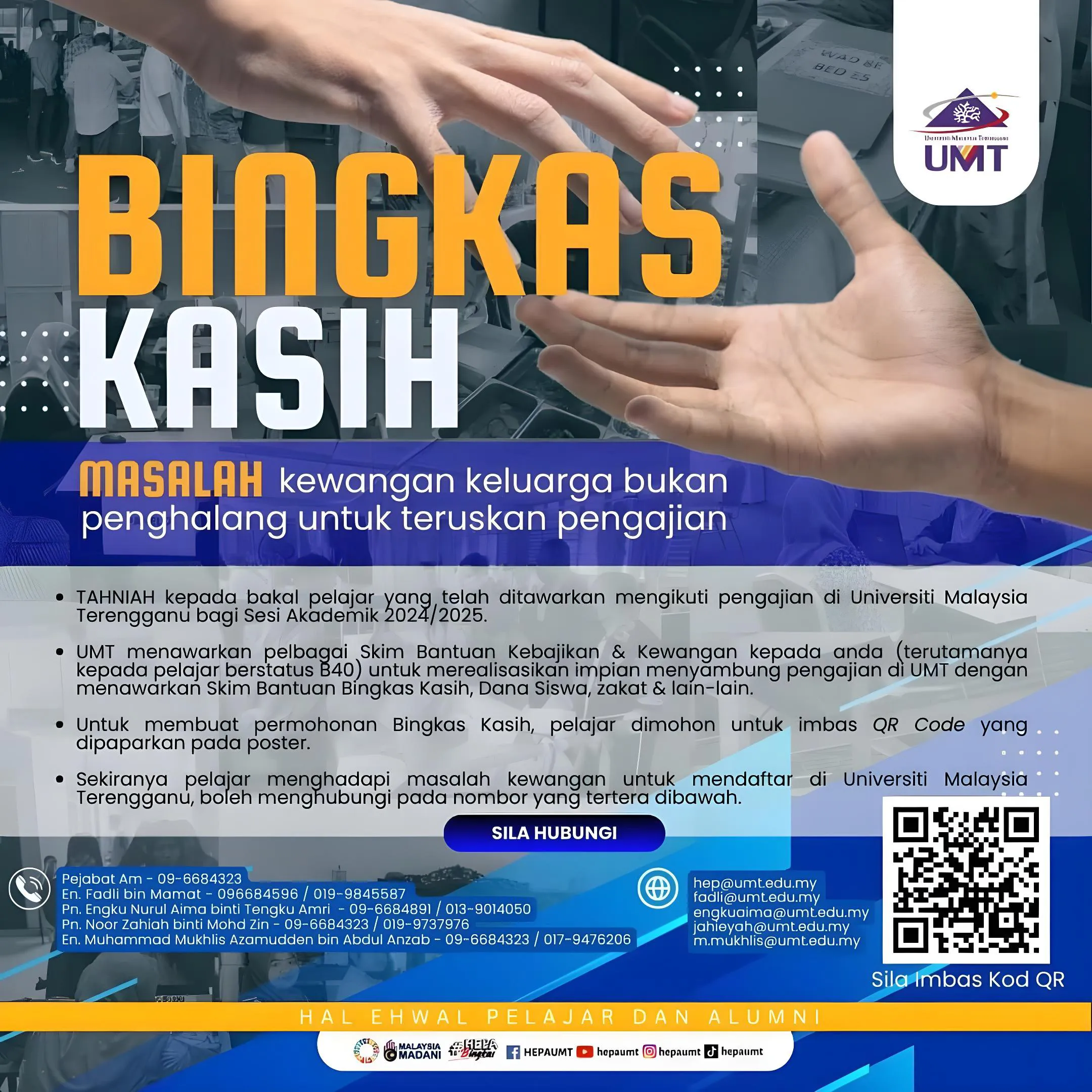The Student Affairs Office (PHEP) is also responsible for services and welfare for students, especially in matters that include health, financial aid, security and scholarships for UMT students.