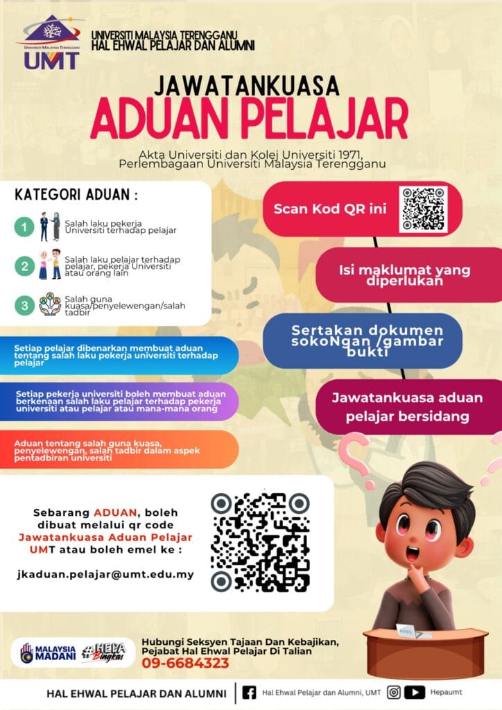 Jangan pendamkan, salurkan kepada Jawatankuasa Aduan Pelajar UMT!
