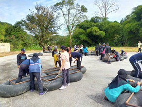 Picture 1 : The raft making process is done by the participants.