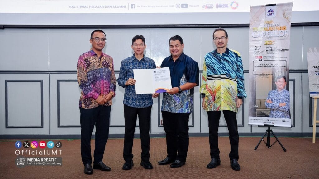 Pejabat Hal Ehwal Pelajar dan Alumni (HEPA), UMT telah menganjurkan Majlis Perutusan Timbalan Naib Canselor (Hal Ehwal pelajar dan Alumni), Profesor Dr. Mohd Izani Mohd Zain pada 27 Februari 2025 bertempat di Auditorium Sulaiman, Perpustakaan Sultanah Nur Zahirah, UMT dengan tema “Menggagas Idea, Menatah Mahasiswa Idaman”.