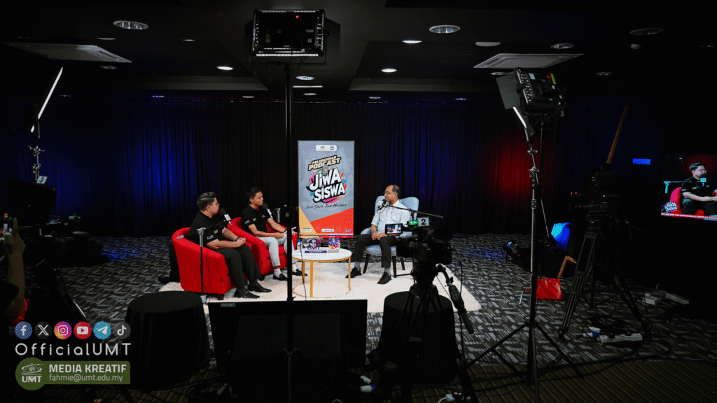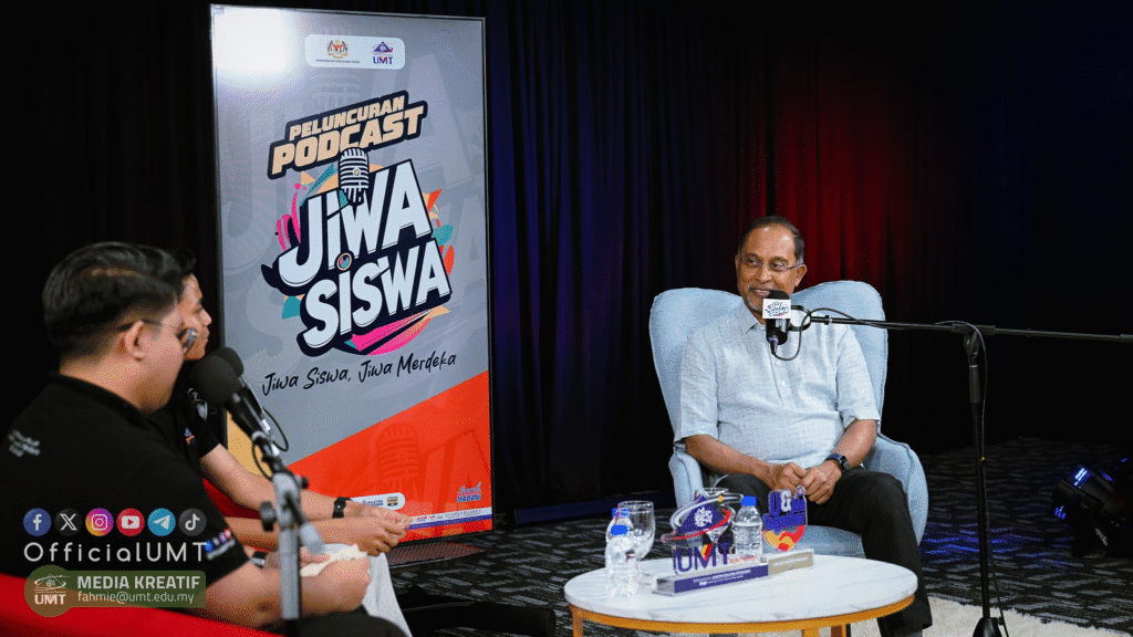 Kuala Nerus, 10 Ogos 2025 – Menteri Pendidikan Tinggi, Dato’ Seri Diraja Dr. Zambry bin Abd Kadir telah menyempurnakan peluncuran Podcast Jiwa Siswa di Universiti Malaysia Terengganu (UMT) bersempena Program Semarak Kampus Madani, Terengganu. Istimewanya, YB Menteri bukan sahaja merasmikan peluncuran ini malah turut tampil sebagai panel jemputan untuk episod sulung bertemakan “Jiwa Siswa, Jiwa Merdeka”, bersama dua hos iaitu Muhammad Zaki bin Anuar (Setiausaha Agung Majlis Perwakilan Pelajar UMT) dan Muhammad Afiq Naqiuddin bin Mohd Afizal (Exco Kesukarelawanan & Kepimpinan MPP UMT).