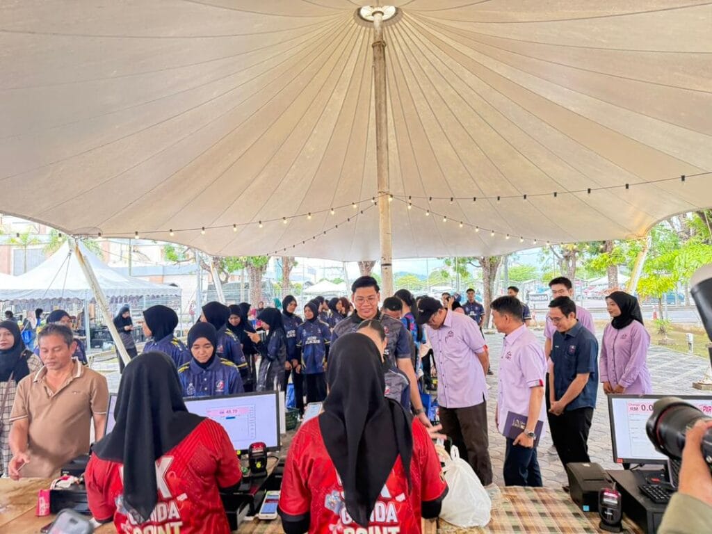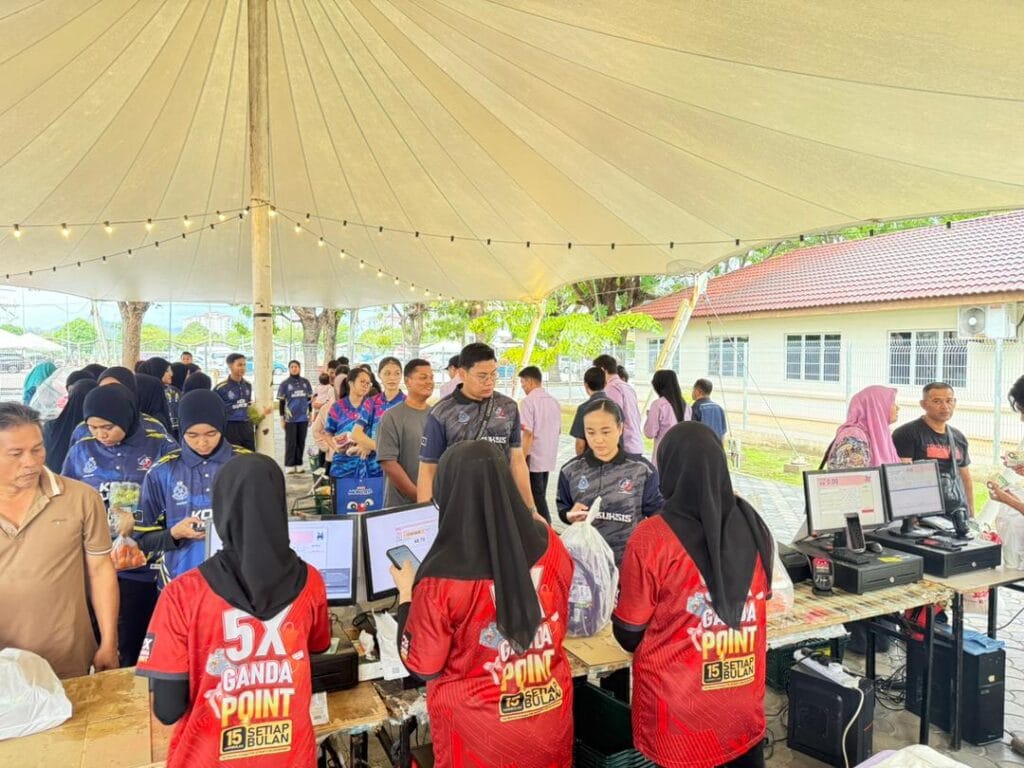 KUALA NERUS, 15 November – Universiti Malaysia Terengganu (UMT) dengan kerjasama Kementerian Perdagangan Dalam Negeri dan Kos Sara Hidup (KPDN) Negeri Terengganu hari ini menganjurkan Program Jualan Rahmah MADANI @ Kampus, bertempat di Halaman Serambi Niaga, Kolej Kediaman UMT. Penganjuran ini berjaya menarik kehadiran hampir 1,000 pengunjung, merangkumi mahasiswa UMT, staf universiti serta komuniti sekitar Kuala Nerus.
