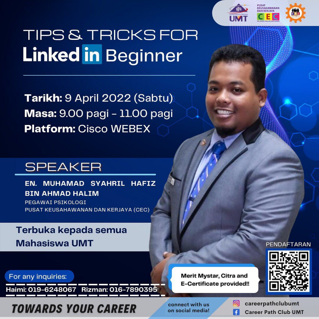 Program Tips & Tricks For LinkedIn Beginner ini memberi penerangan, mengajar berkaitan kepentingan dan cara terbaik pencarian kerja menggunakan aplikasi Linkedin di masa ini.
