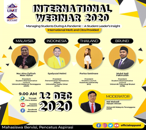 Program ini dengan kerjasama Pusat Pembangunan Holistik dan Kokurikulum (PPHK) dan Pusat Komunikasi Korporat(PKK) yang bertujuan untuk berkongsi dan bertukar pandangan serta cadangan dalam menjaga kebajikan mahasiswa semasa krisis pandemik COVID 19 dengan lebih efisien dan teratur. Program ini membicarakan tentang pengalaman barisan MPP yang terdiri daripada institusi pengajian tinggi awam dan swasta dari MPP Universiti IPTA /IPTS termasuk dari negara Thailand, Brunei Darulsalam dan Indonesia.